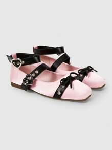 Kawaii أحذية نسائية أنيقة ذات تصميم عريض للأصابع وطية إبزيم ، أسلوب بنكي حلو ، باللون الوردي مناسبة للحفلات والارتداء اليومي وفساتين المساء، مريحة وسهلة الارتداء متعددة الاستخدامات