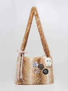 Kawaii حقيبة كتف هلالية ذات سعة كبيرة مبطنة للنساء، بطبعات نمر وغزال، موضة Y2K الرجعية، من فرو اصطناعي طويل الشعر، مناسبة للخريف والشتاء