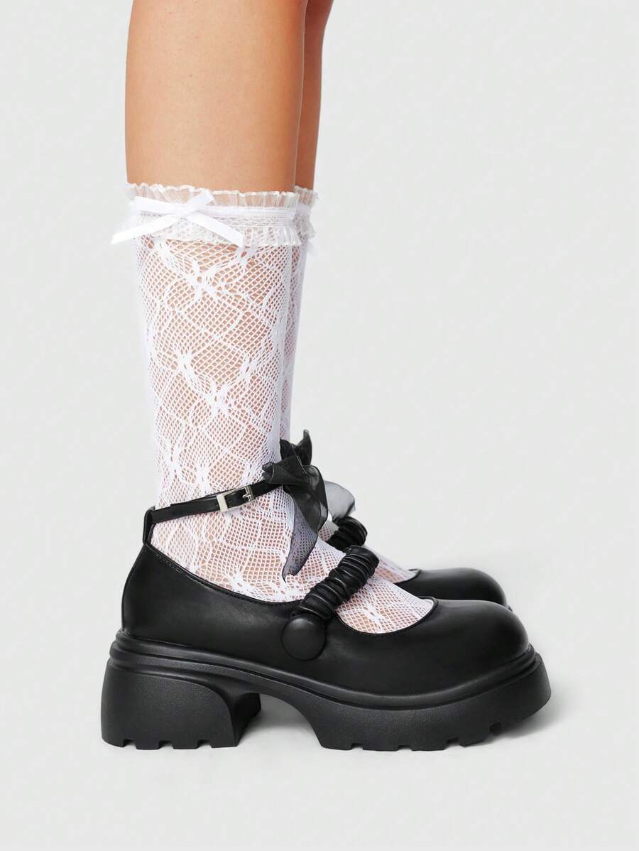 Kawaii أحذية مارى جين للنساء مع رباط وعقدة، أحذية لوفرز ذات كعب منصة وأصبع مربع للارتداء في العمل والمناسبات الرسمية