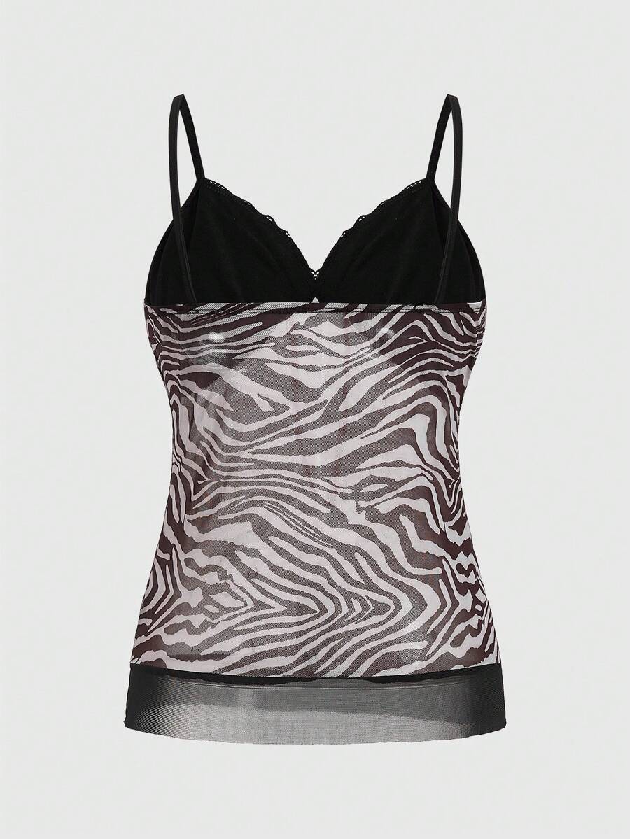 Kawaii قميص نسائي بدون أكمام وطبعة زيبرا ودانتيل
