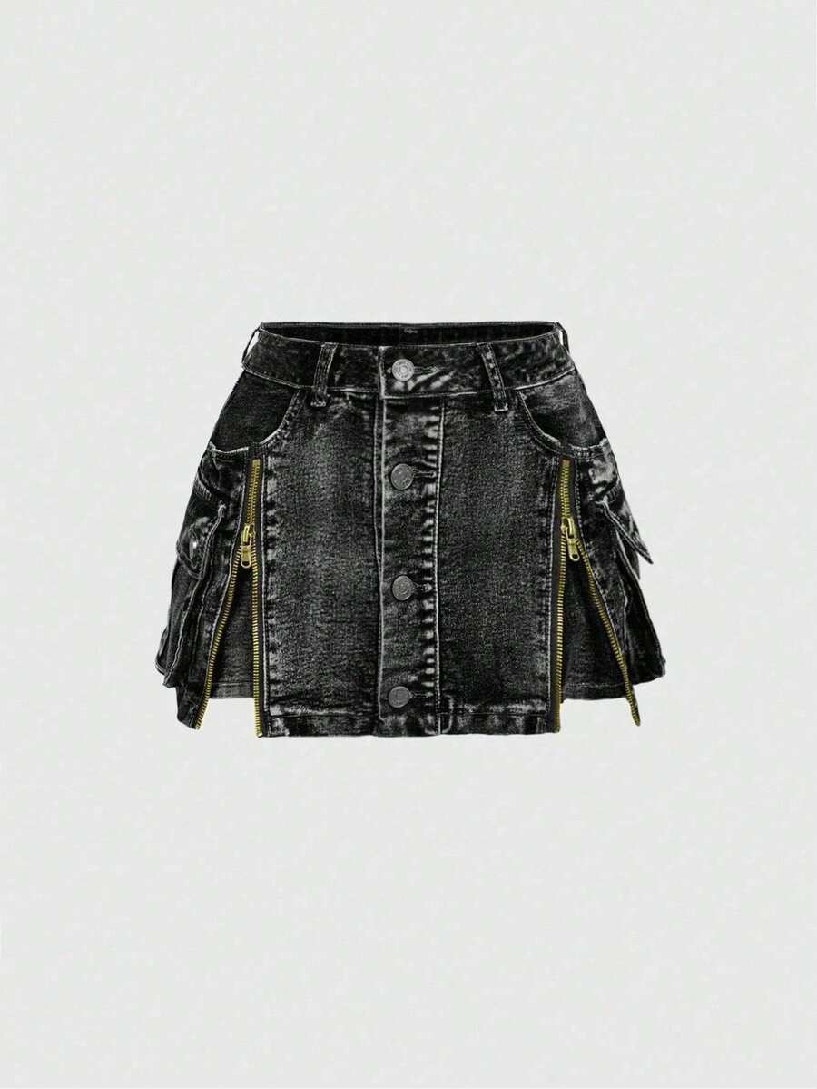 Kawaii تنورة جينز قصيرة منخفضة الخصر مزخرفة بسحاب بطراز Y2K الفاخر المغسول