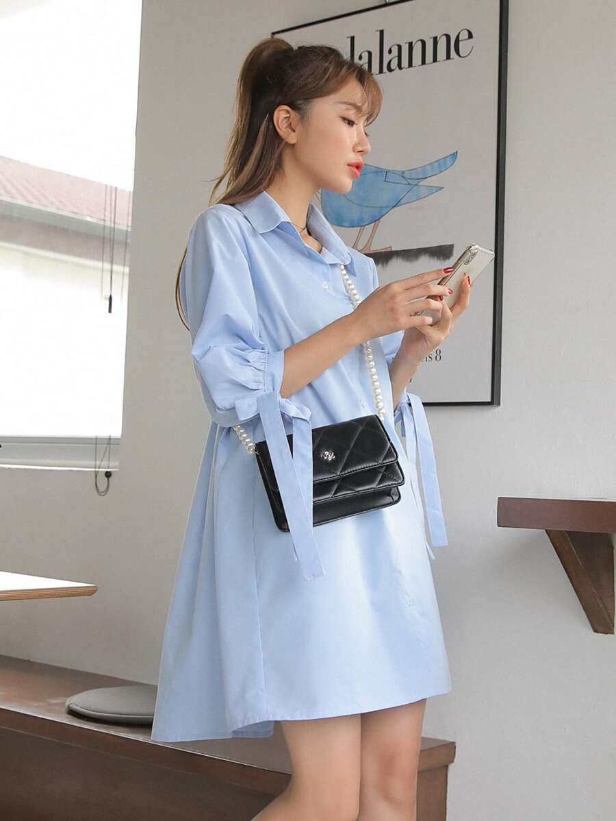 فستان صيفي كاجوال بأكمام منفوخة وياقة مكشكشة، ملابس عودة إلى المدرسة للنساء