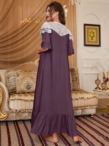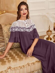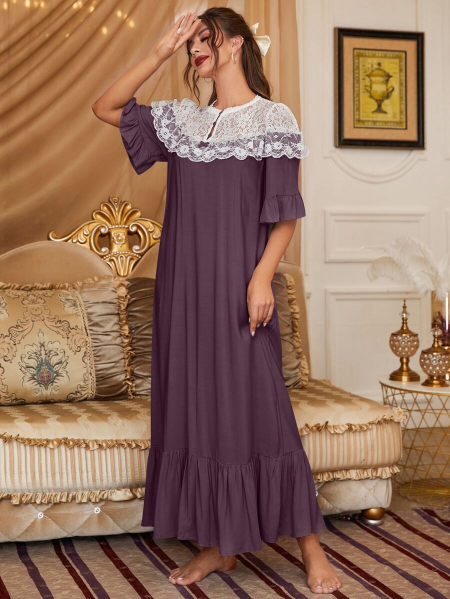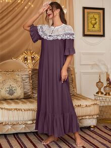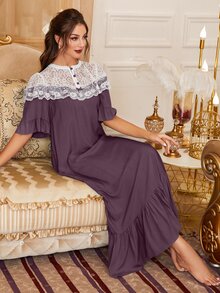 فستان نوم بأطراف مكشكشة وأجزاء دانتيل