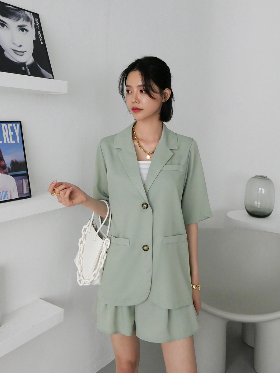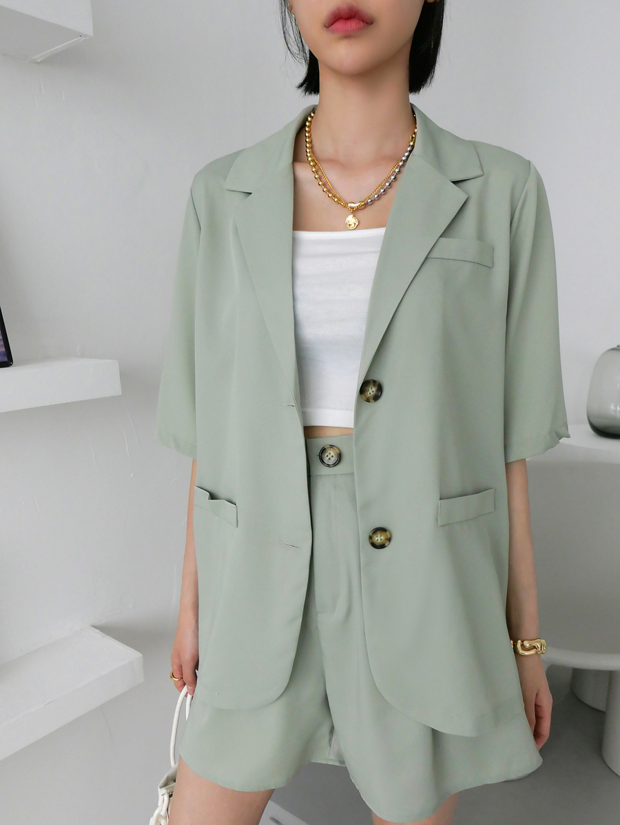 ملابس علوية مع أزرار أمامية وأكمام علوي مع شورت صيفية، بدون توب لست ملابس علوية، مجموعة قطعتين للنساء