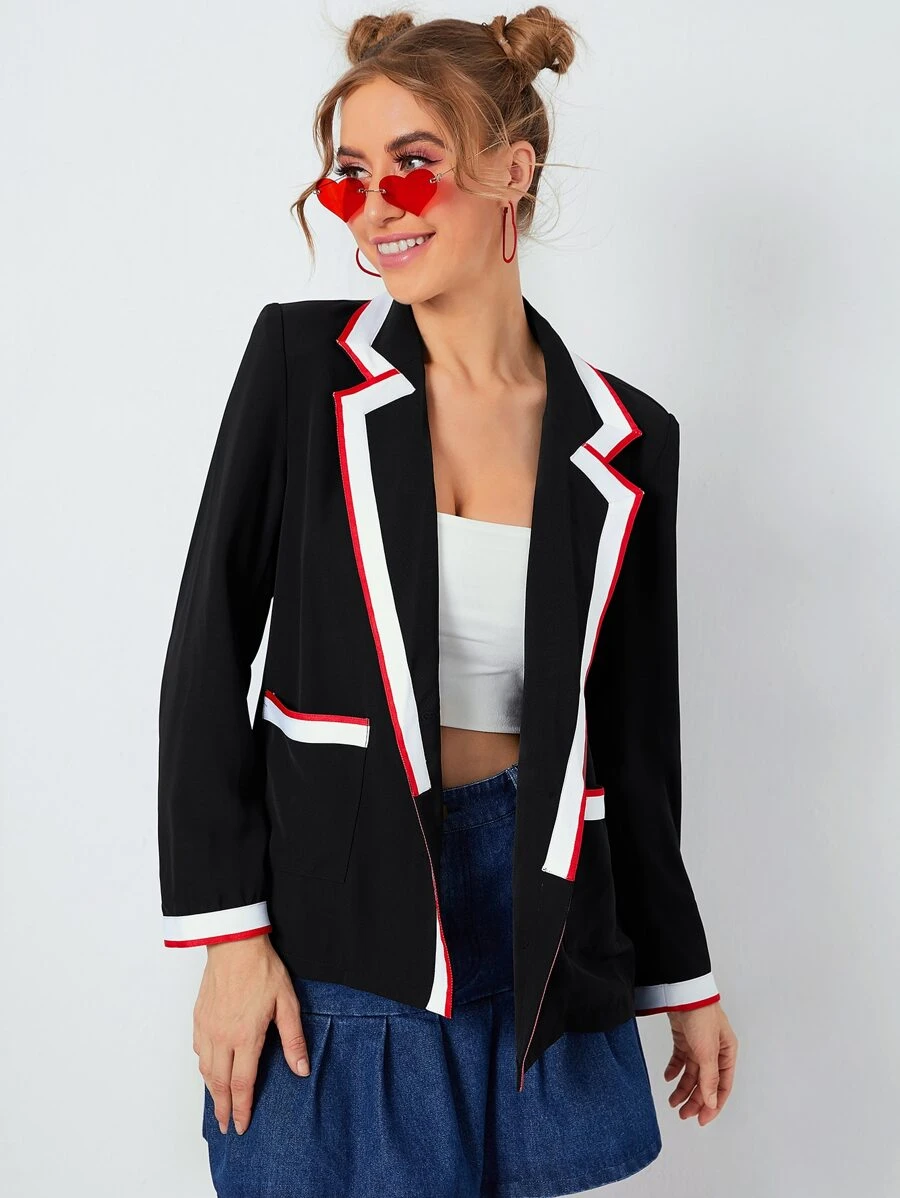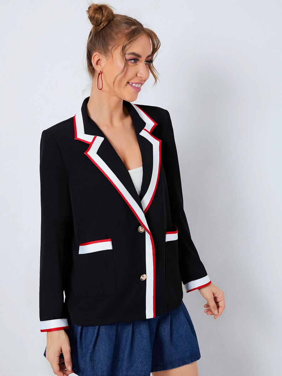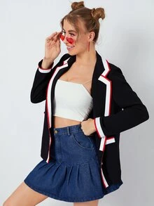 بليزر بازرار امامي بشريط متباين وبعنق مفتوح