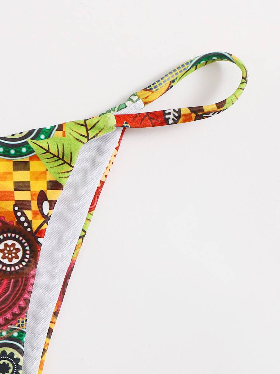 مجموعة بيكيني مثلث بطباعة أوراق و أشكال هندسية لصيف على الشاطئ