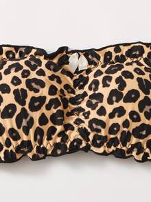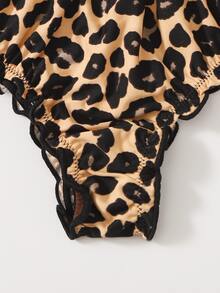 طقم ملابس داخلية مقلم بهدب نمط الفهد