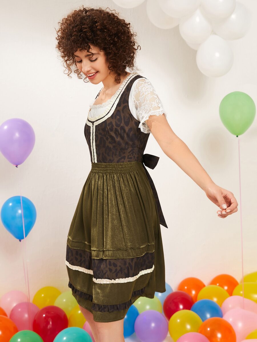 فستان بحزام طباعة الفهد خصر مدرز مزركش بدون لباس علوي