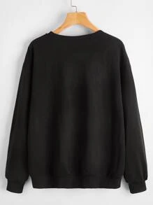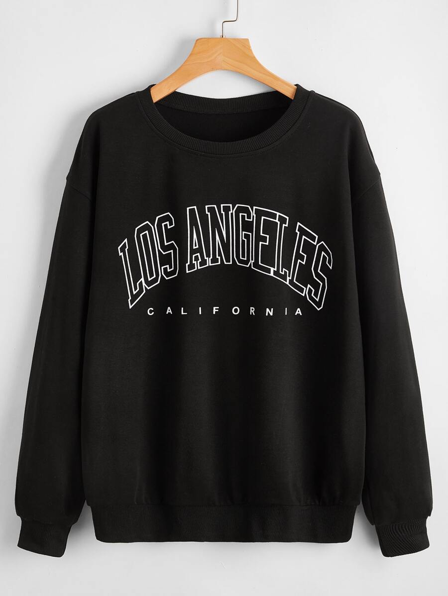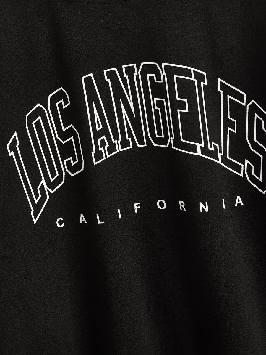 قميص ثقيل منخفض الكتف بعبارة