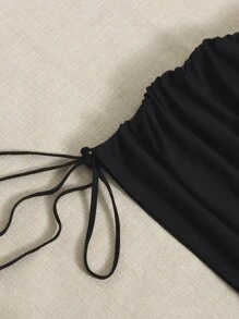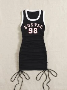 فستان برباط بشريط جانبي متباين بجرافيك عبارة