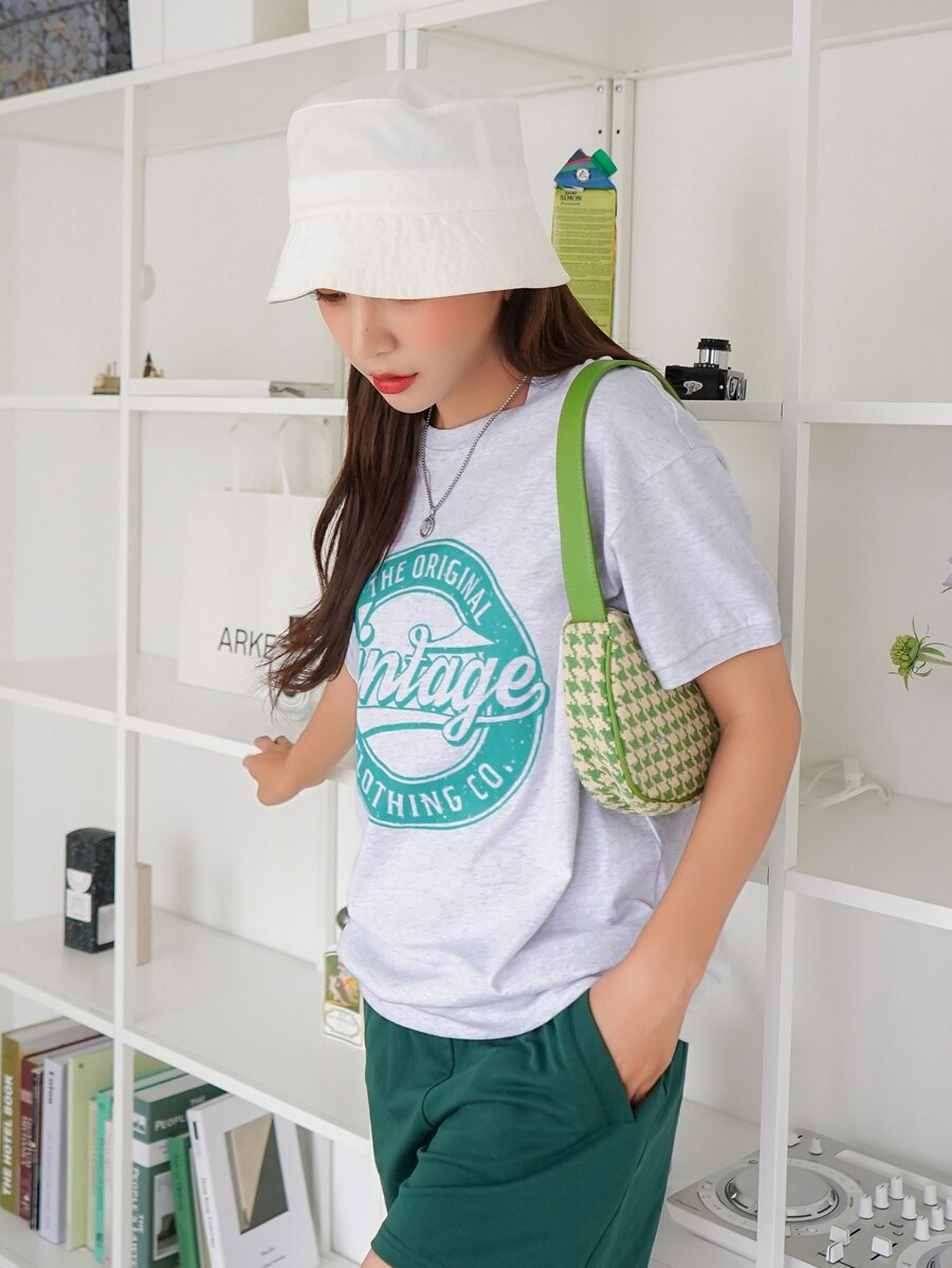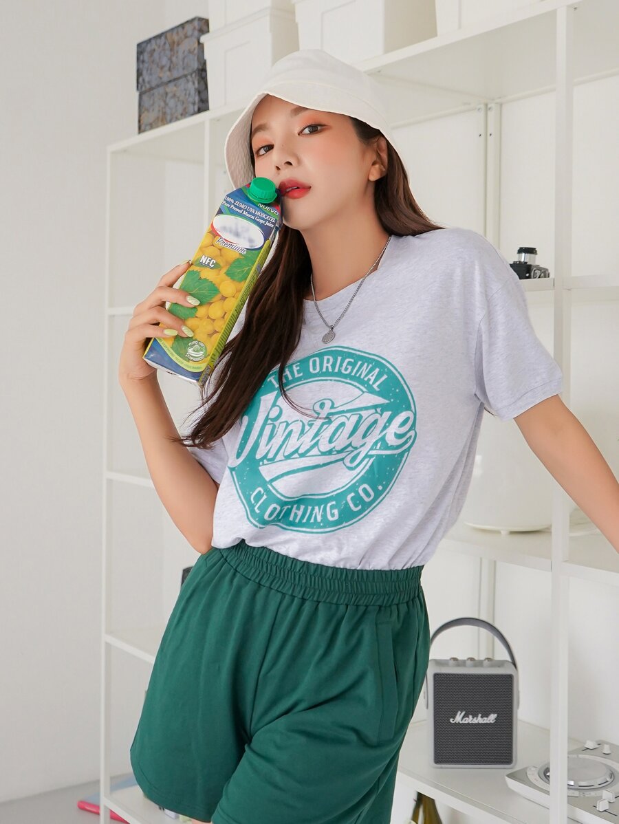 لباس علوي استراحة منخفض الكتف بجرافيك عبارة