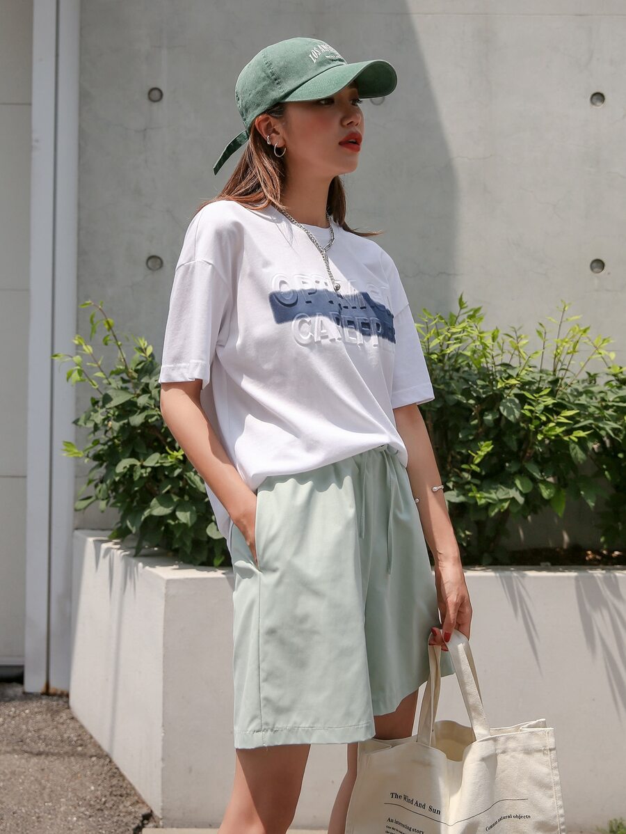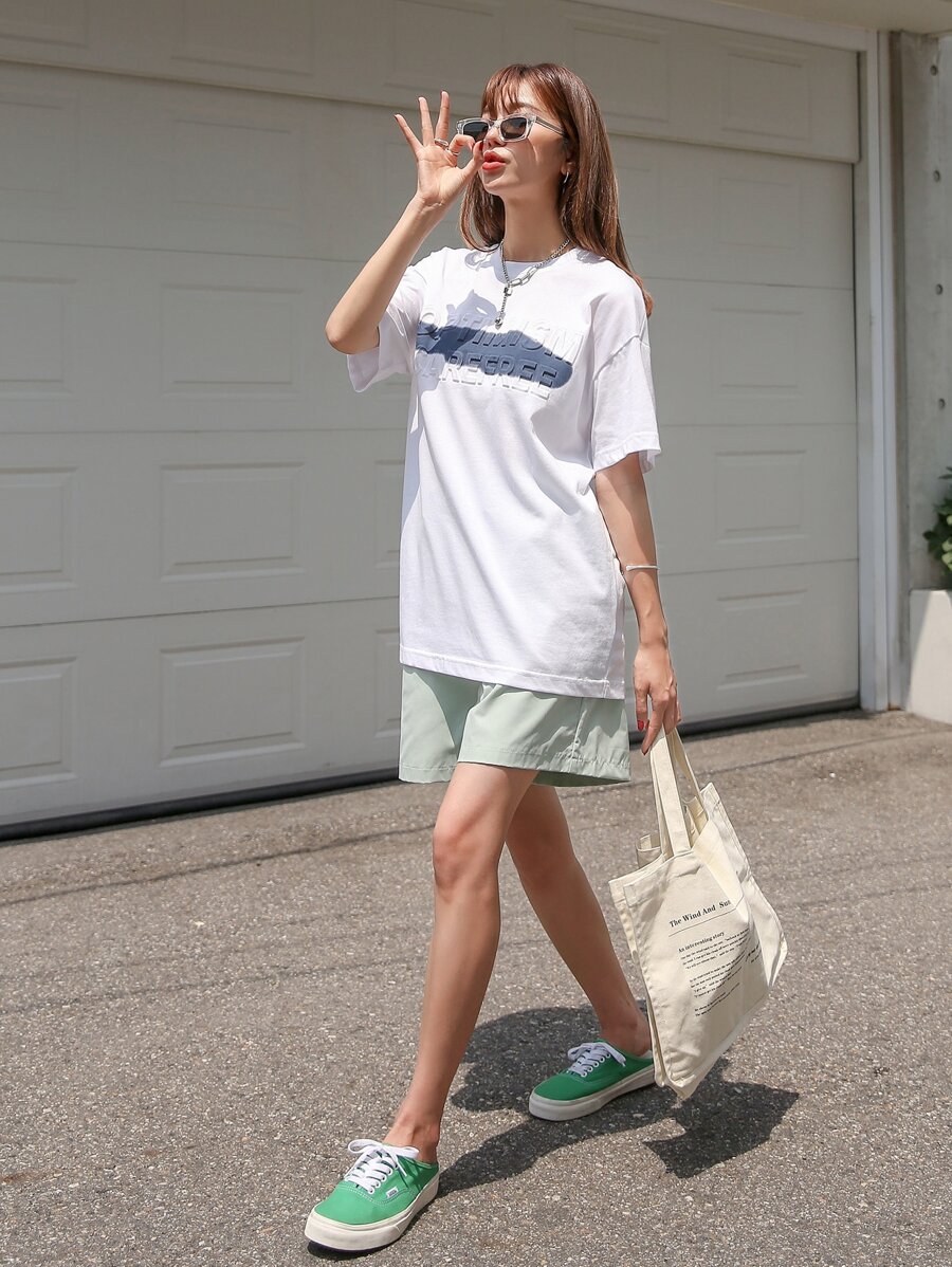 تي شيرت كبير الحجم مع طباعة حرفية للصيف