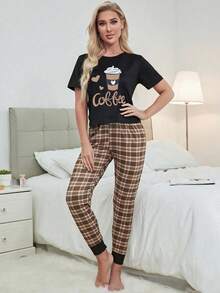 طقم بيجاما بتصميم حرف وسروال مربعات