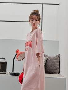 فستان تي شيرت باكمام راجلان بجرافيك عبارة
