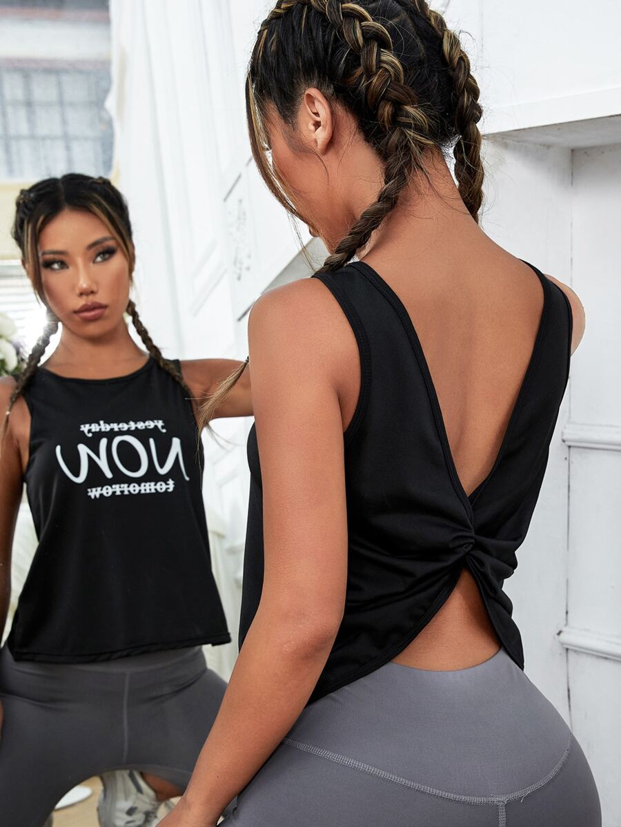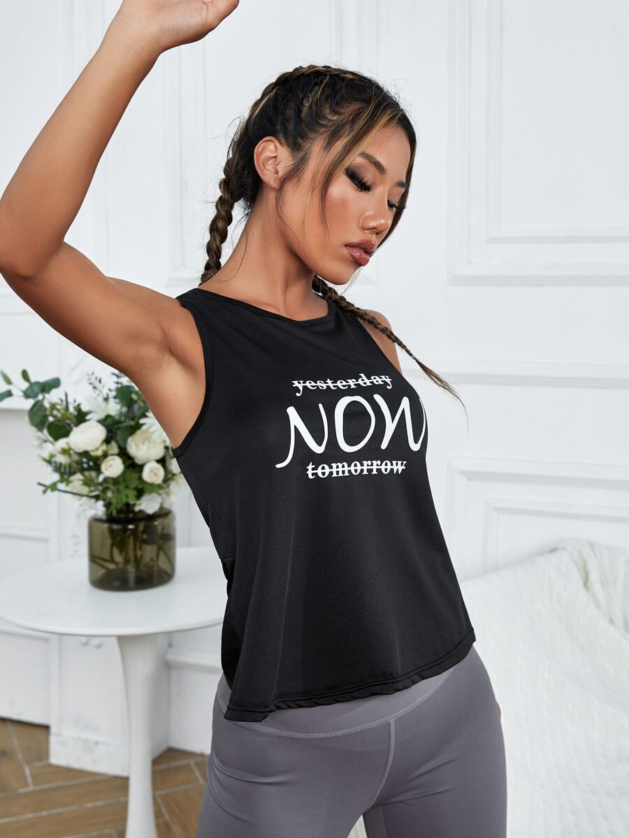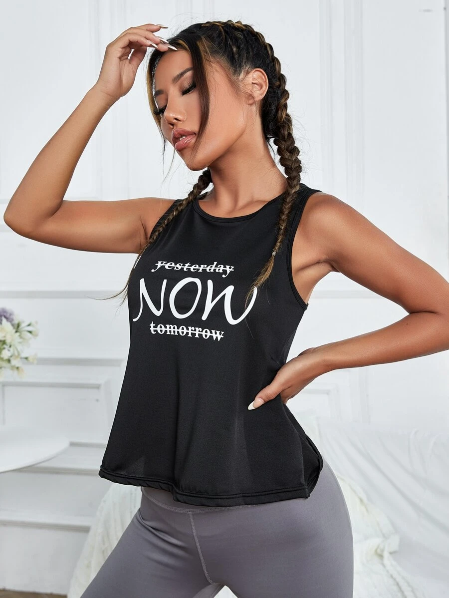 لباس علوي تانك رياضي بطباعة أحرف مطوي خلفي