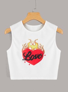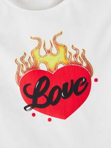 لباس علوي تانك حرف قلب مع بجرافيك نار