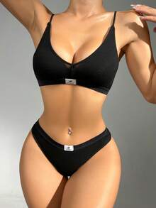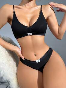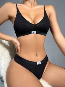طقم ملابس داخلية تفاصيل مرقع بعبارة