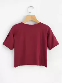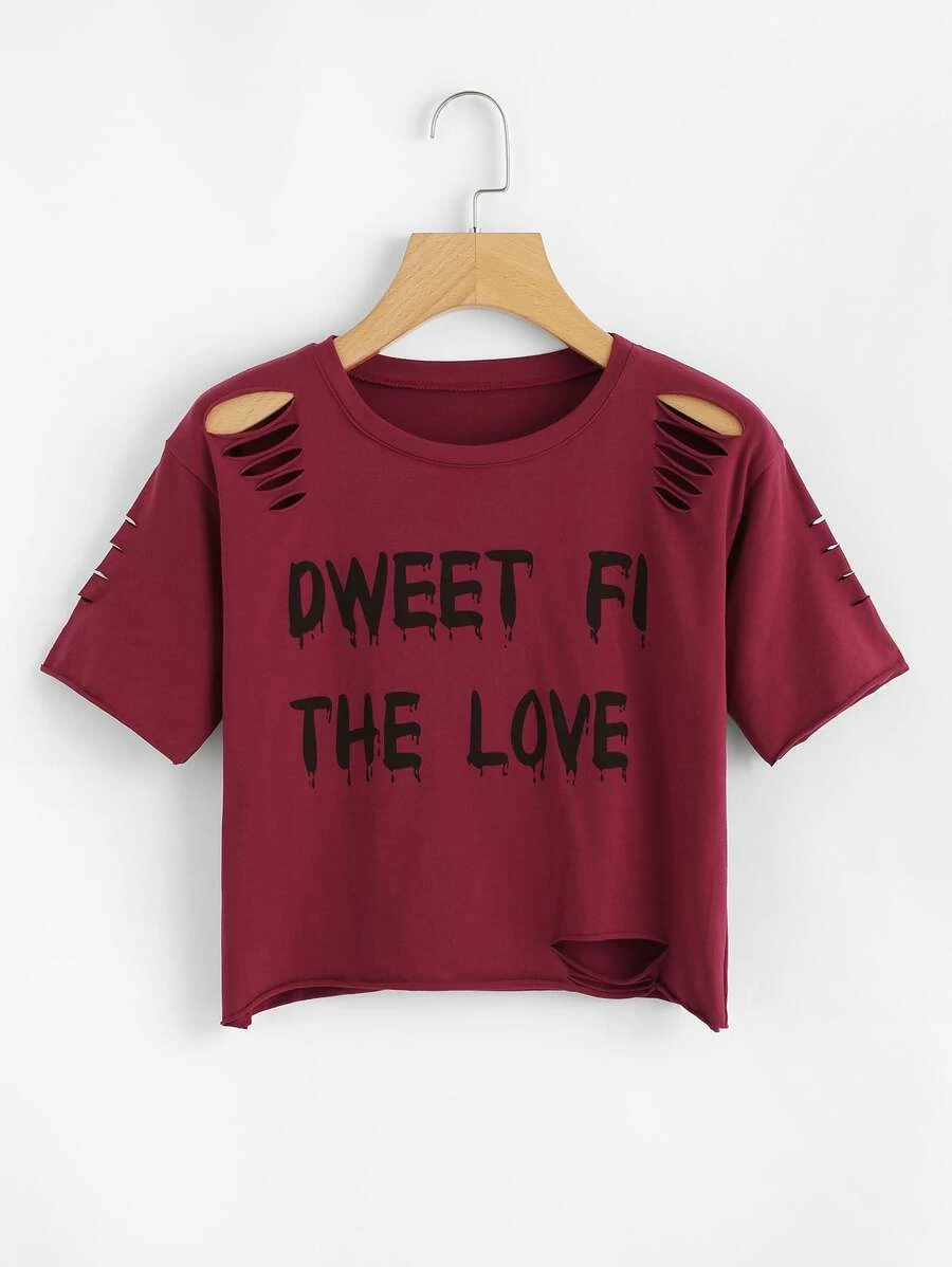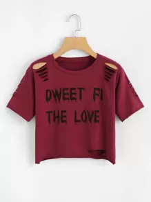 تيشيرت قصيرة ممزقة بطباعة حرف