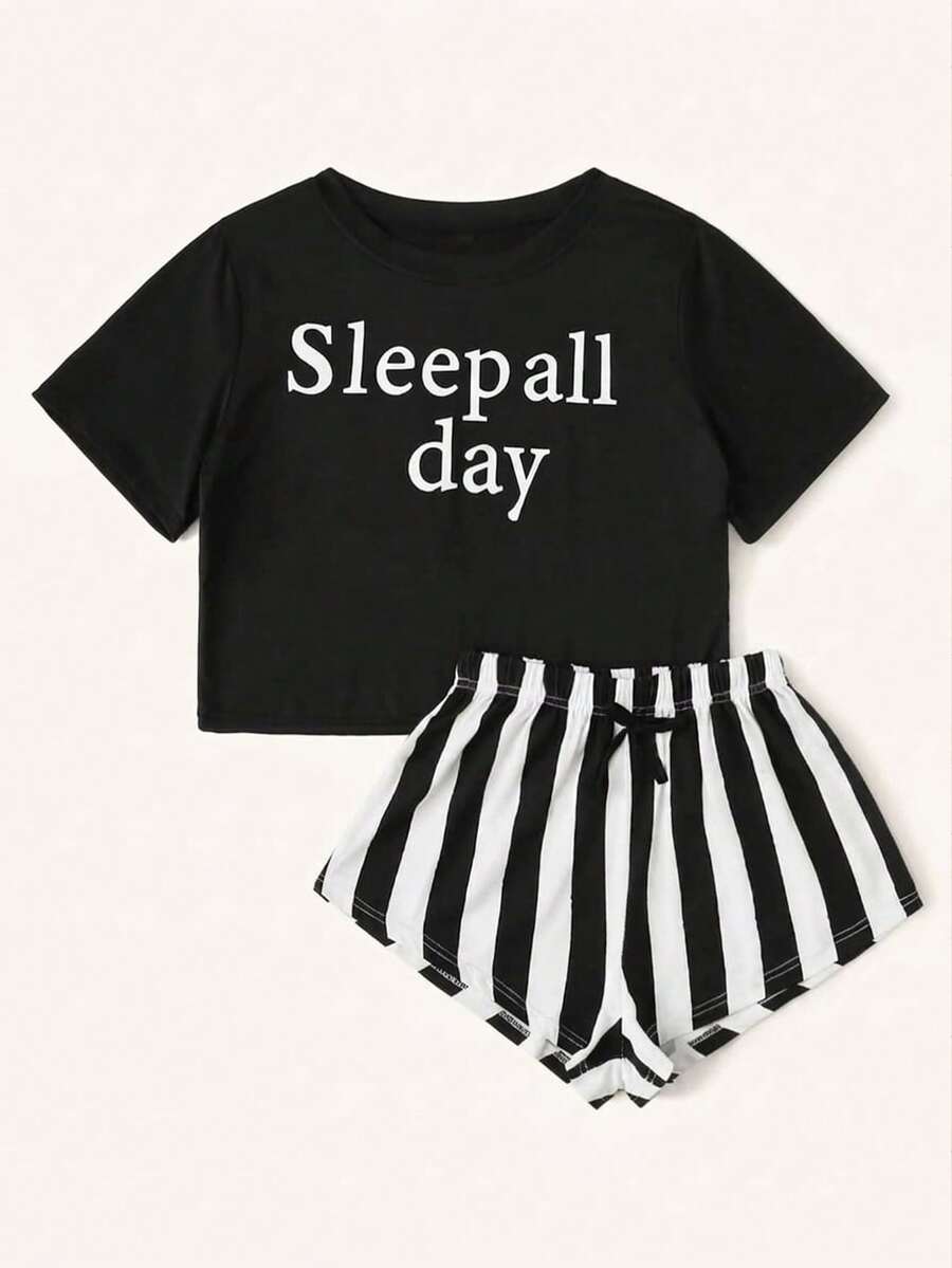 طقم بيجامة مطبوع بالحروف والخطوط، طقم بيجامة لموسم العطلات