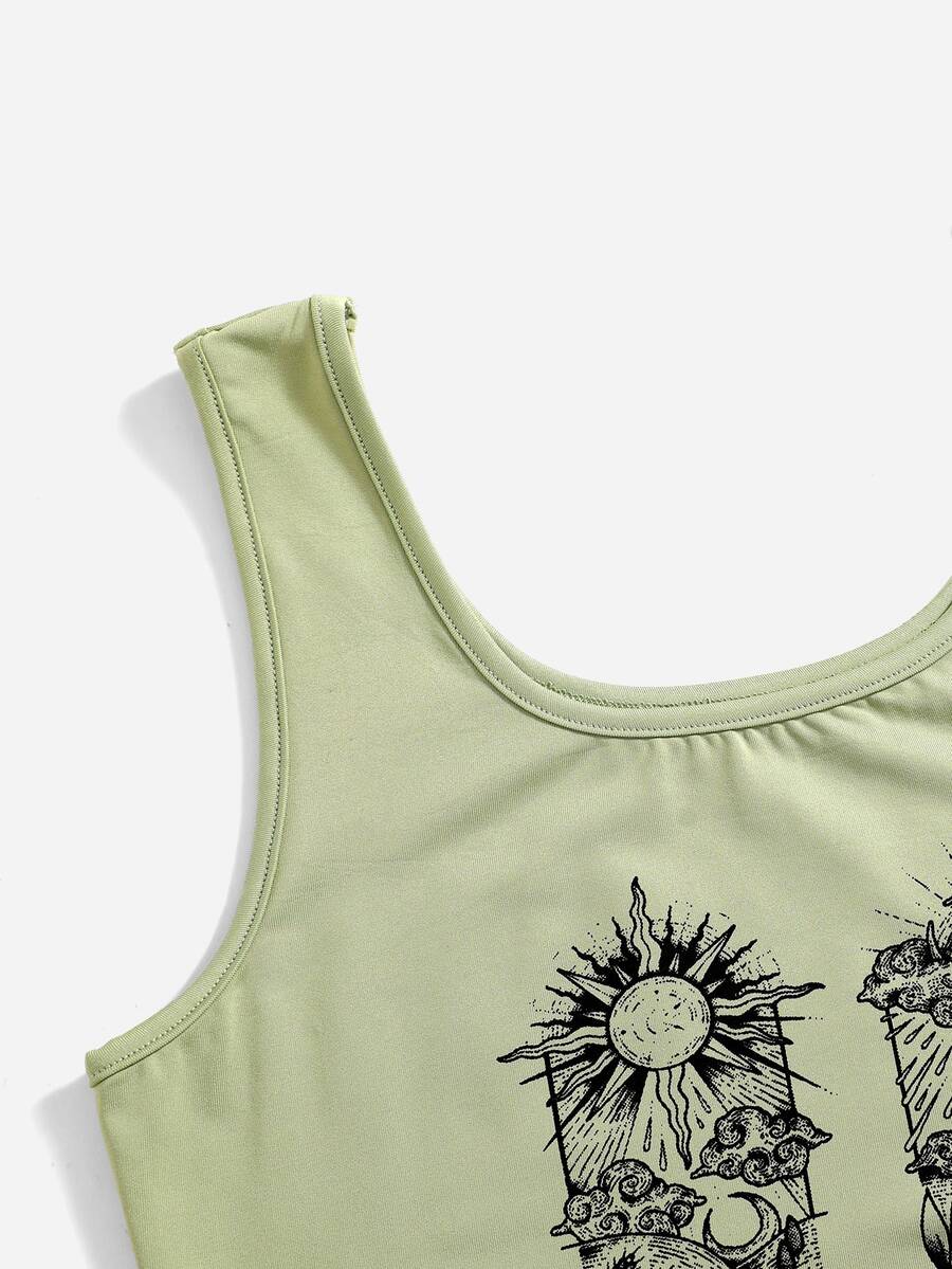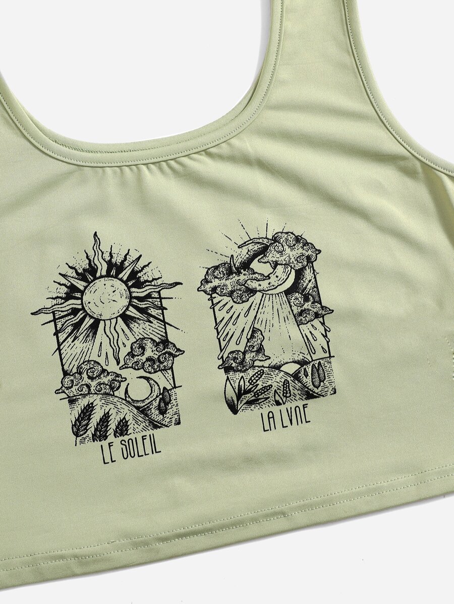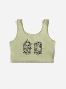 لباس علوي تانك قصير حرف بجرافيك قمر وشمس
