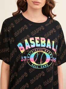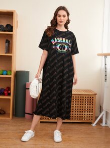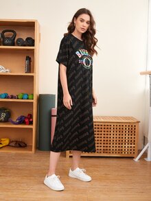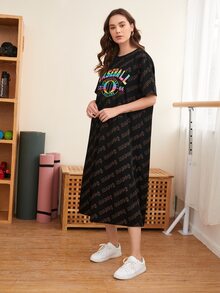 فستان تي شيرت بطباعة جرافيك وعبارة