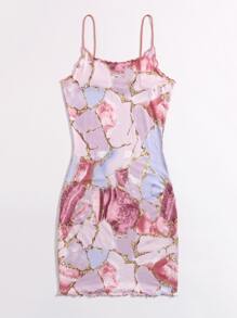 فستان كامي بأطراف مموجة وطباعة متكررة