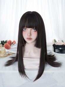 شعر مستعار طويل مستقيم لألياف الاصطناعية منسوج مع شعر ناصية