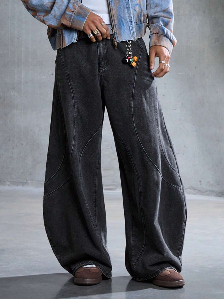 بنطلون جينز واسع الساق مرتخي بطراز الهيب هوب للرجال