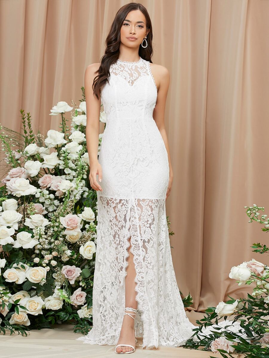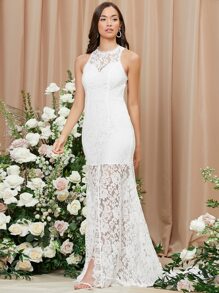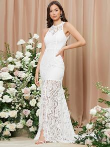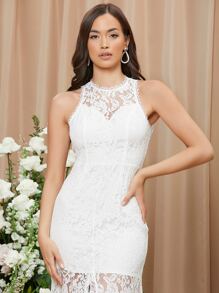 فستان بغطاء دانتيل بحافة فتحة منخفض خلفي