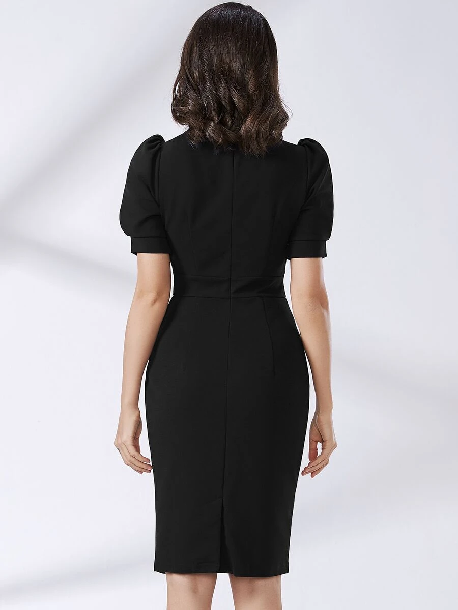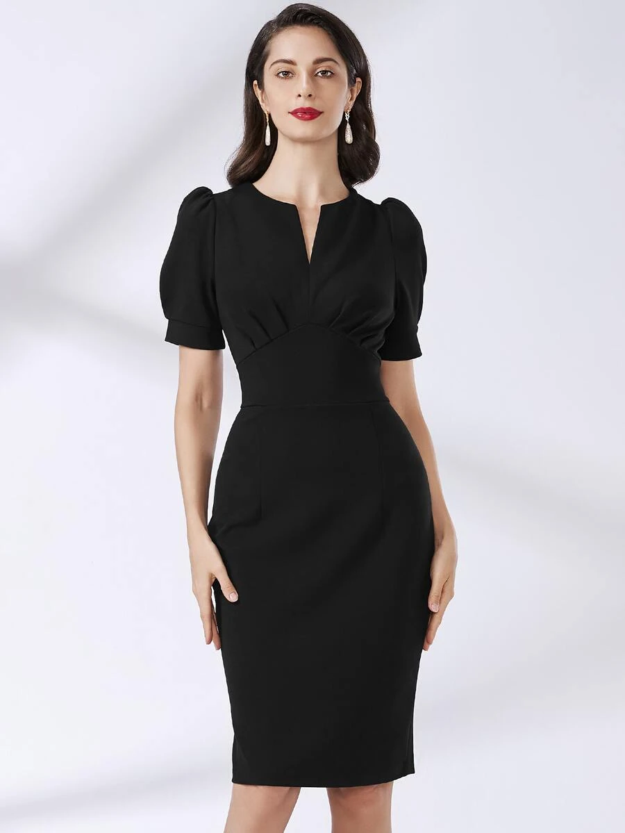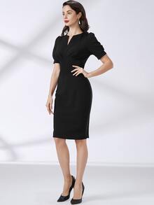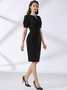MIUSOL فستان بلون موحد وباكمام منتفخة بياقة دائري