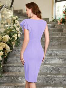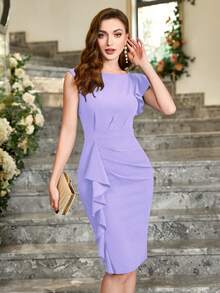 MIUSOL فستان كوكتيل مناسب مع كشكشة غير متماثلة في الأكمام، فستان نسائي أنيق شبه رسمي
