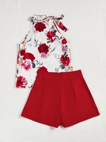 سروال قصير مع لباس علوي معلق معقود ومزهر