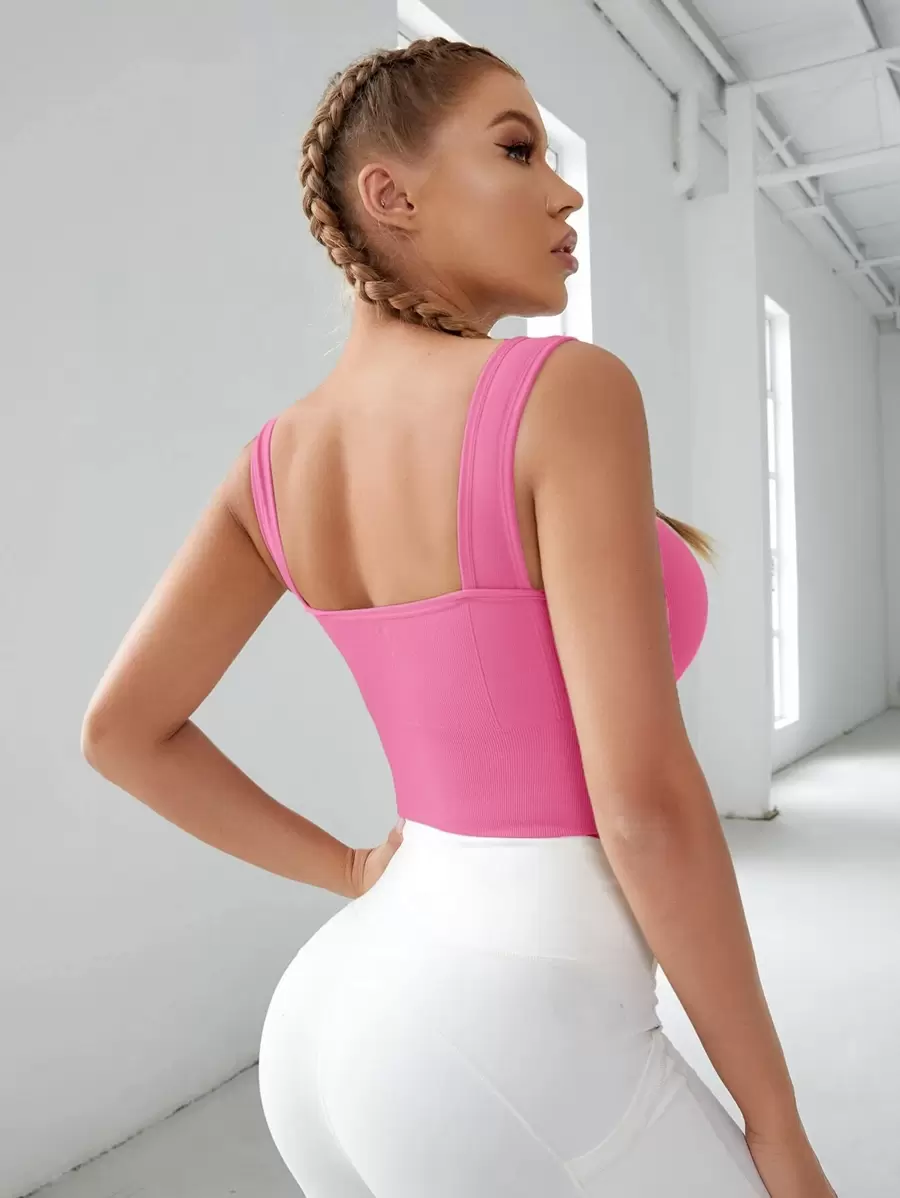 حمالة صدر رياضية من دعم متوسط منسجمة اللحمة ، حمالة صدر لياقة باللون الوردي ، حمالة صدر رياضية مرفوعة ، حمالة صدر رياضية بدون غرز