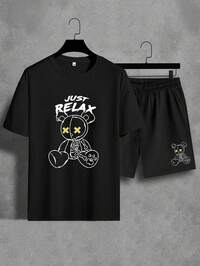 تي شيرت وشورت بجرافيك عبارة ودب للرجال