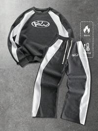 Casual طقم هوديي وبنطلون رياضي للرجال بتصميم لوحات ملونة متباينة