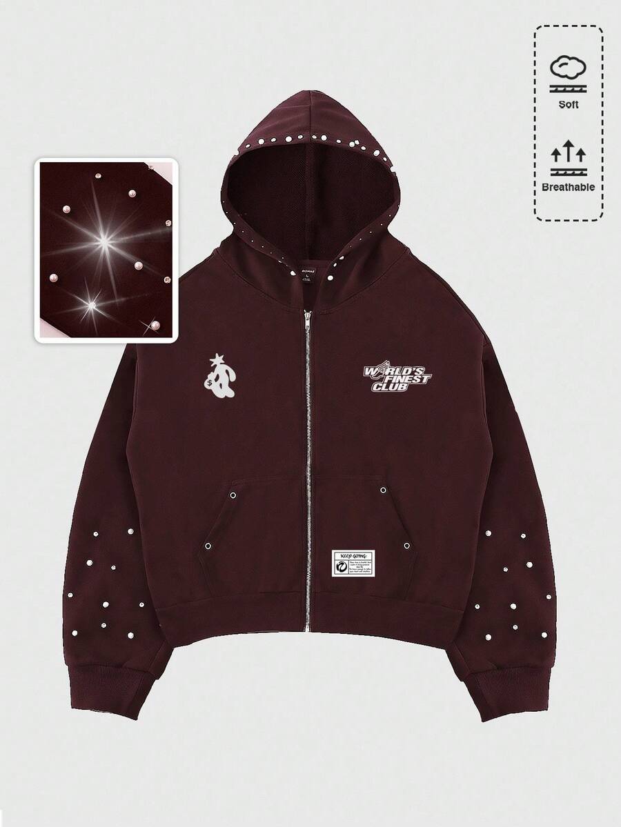 Street Life بلوزة رجالية مزينة بالخرز ثلاثي الأبعاد، بتصميم فضفاض قصير، للخريف