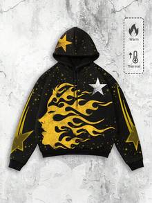 Street Life بلوزة هوديي كاجوال بأكمام طويلة وسحاب للرجال، مطبوعة بنجمة خماسية وأشكال، مناسبة للخريف