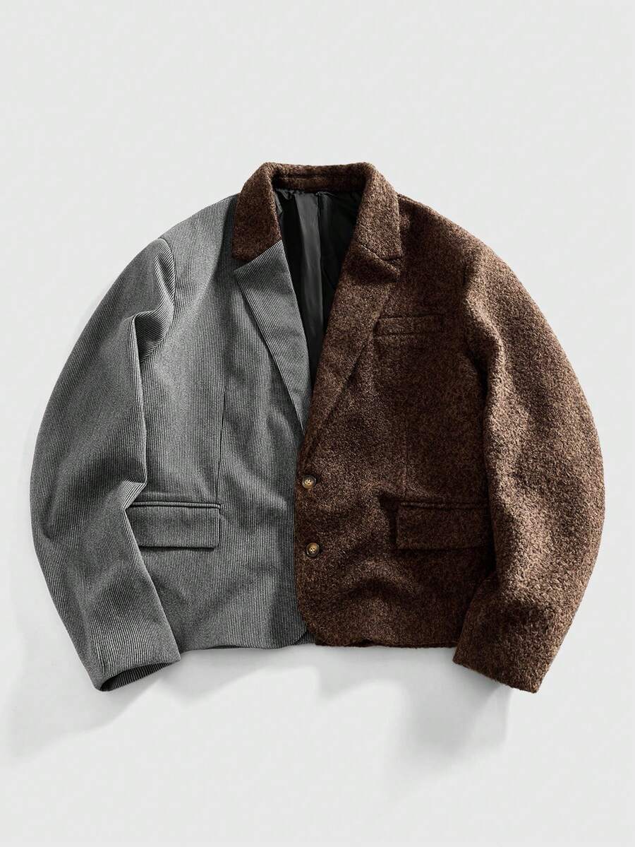 Grunge Punk معطف رجالي من خليط الصوف بتصميم كتل اللون للخريف/الشتاء