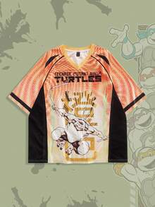 TEENAGE MUTANT NINJA TURTLES X ROMWE قميص تي شيرت كاجوال للرجال بأكمام قصيرة وطبعة سلحفاة ملونة، صيفي