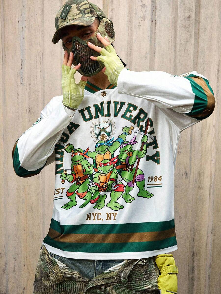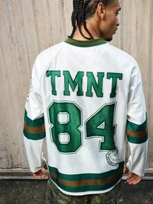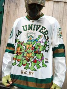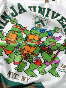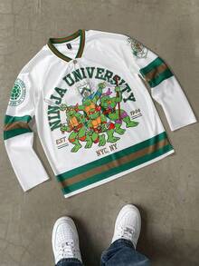 TEENAGE MUTANT NINJA TURTLES X ROMWE قميص تي شيرت كاجوال للرجال بياقة على شكل سلحفاة وطباعة ملونة، أكمام طويلة، موسم الخريف