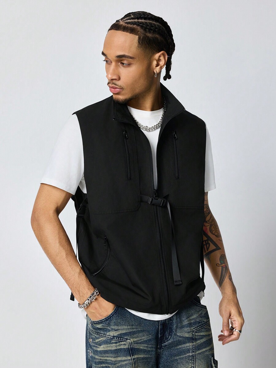 Street Life سترة رجالية سوداء بياقة عالية بلون أحادي للملابس اليومية