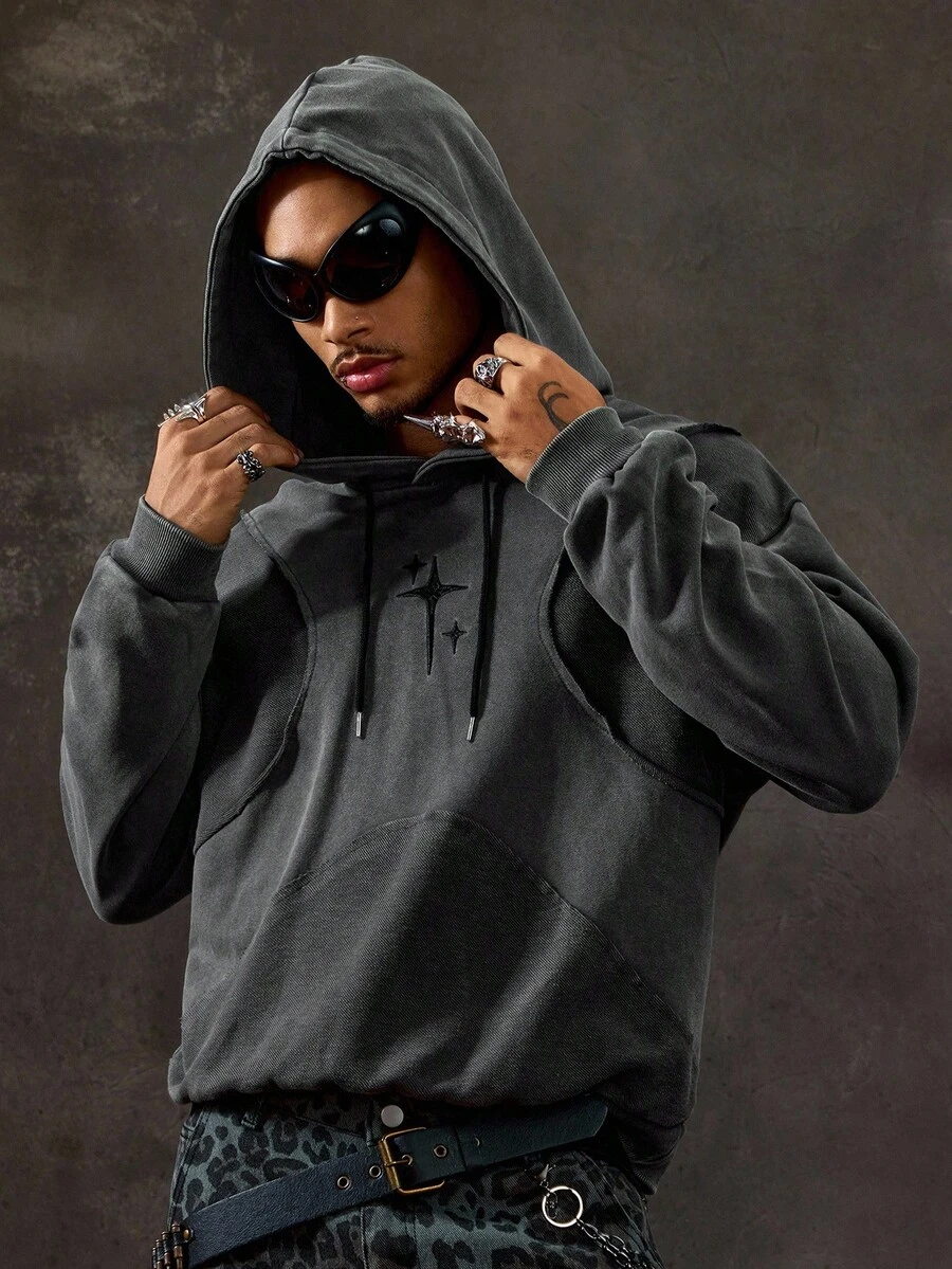 Street Life بلوزة هوديي كاجوال بأكمام طويلة مطبوعة بنجوم بألوان متباينة للرجال