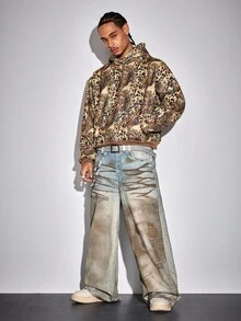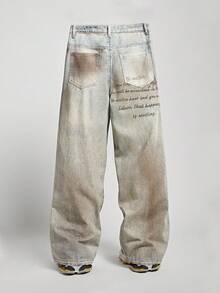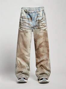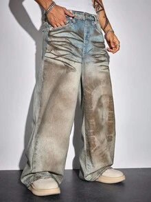 Street Life بنطلون جينز رجالي فضفاض بتدرج لون مغسول بقصة ساق واسعة
