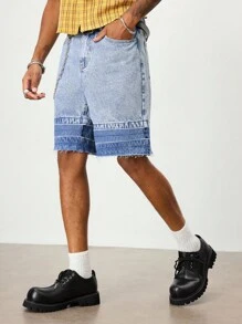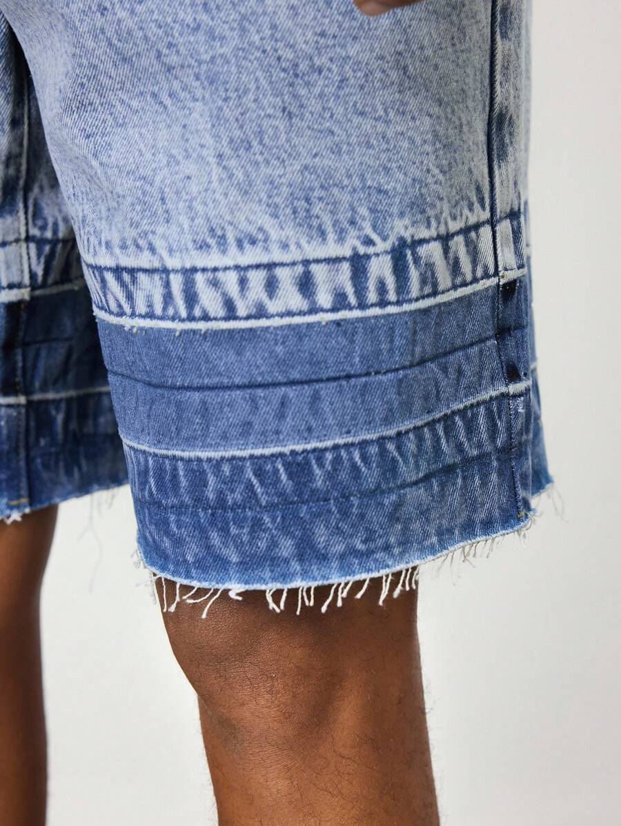 Street Life شورتات جينز بجيوب وحواف مبهتة وألوان متباينة للرجال