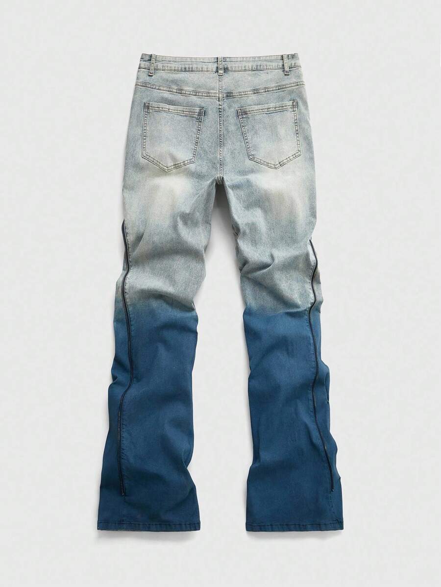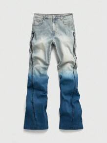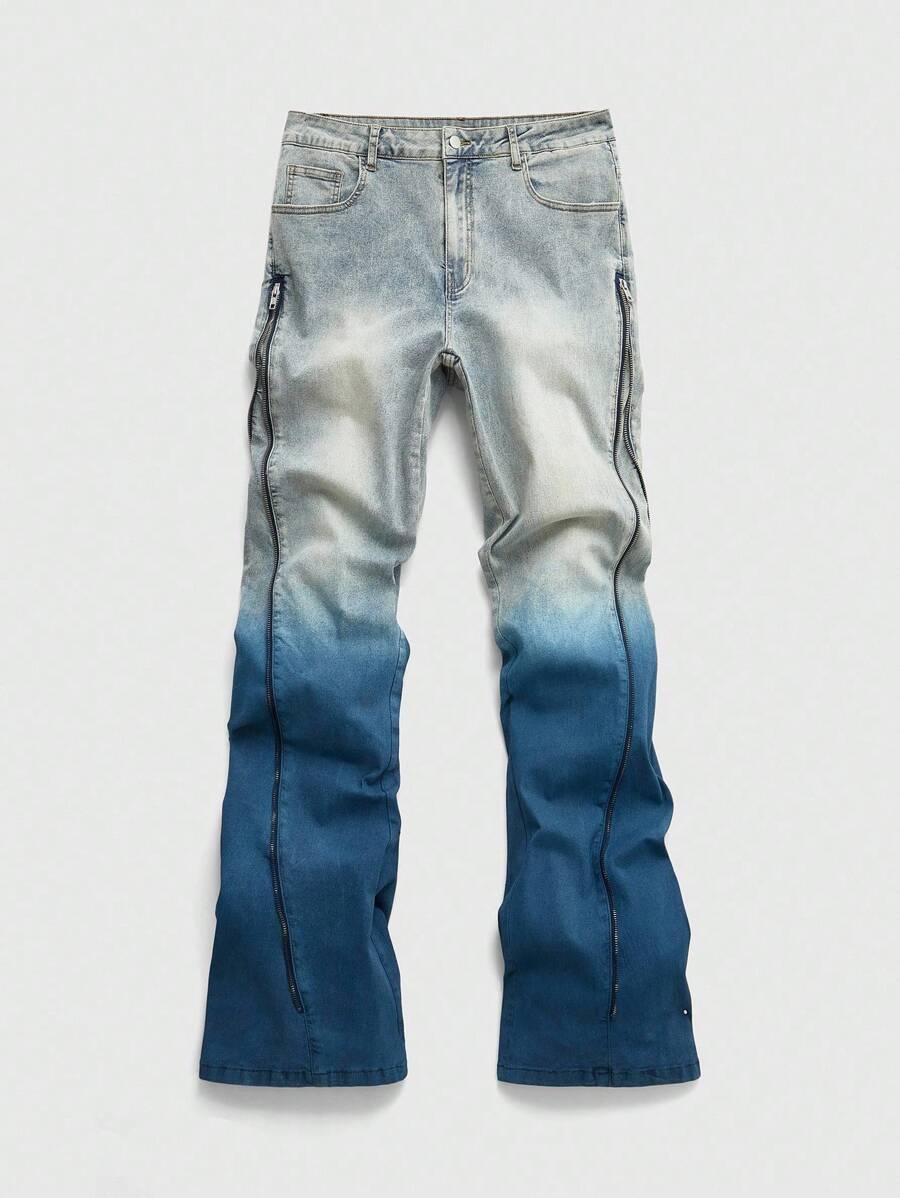 Street Life بنطلون جينز رجالي بجيوب سحاب وتصميم متدرج اللون