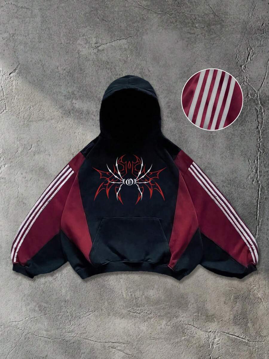 Street Life هودي رجالي بتصميم لوحات ملونة متباينة، بقصة فضفاضة قصيرة، للخريف