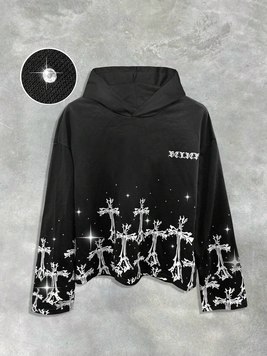 هودي بأكمام طويلة مطبوع بطباعة عشوائية للرجال