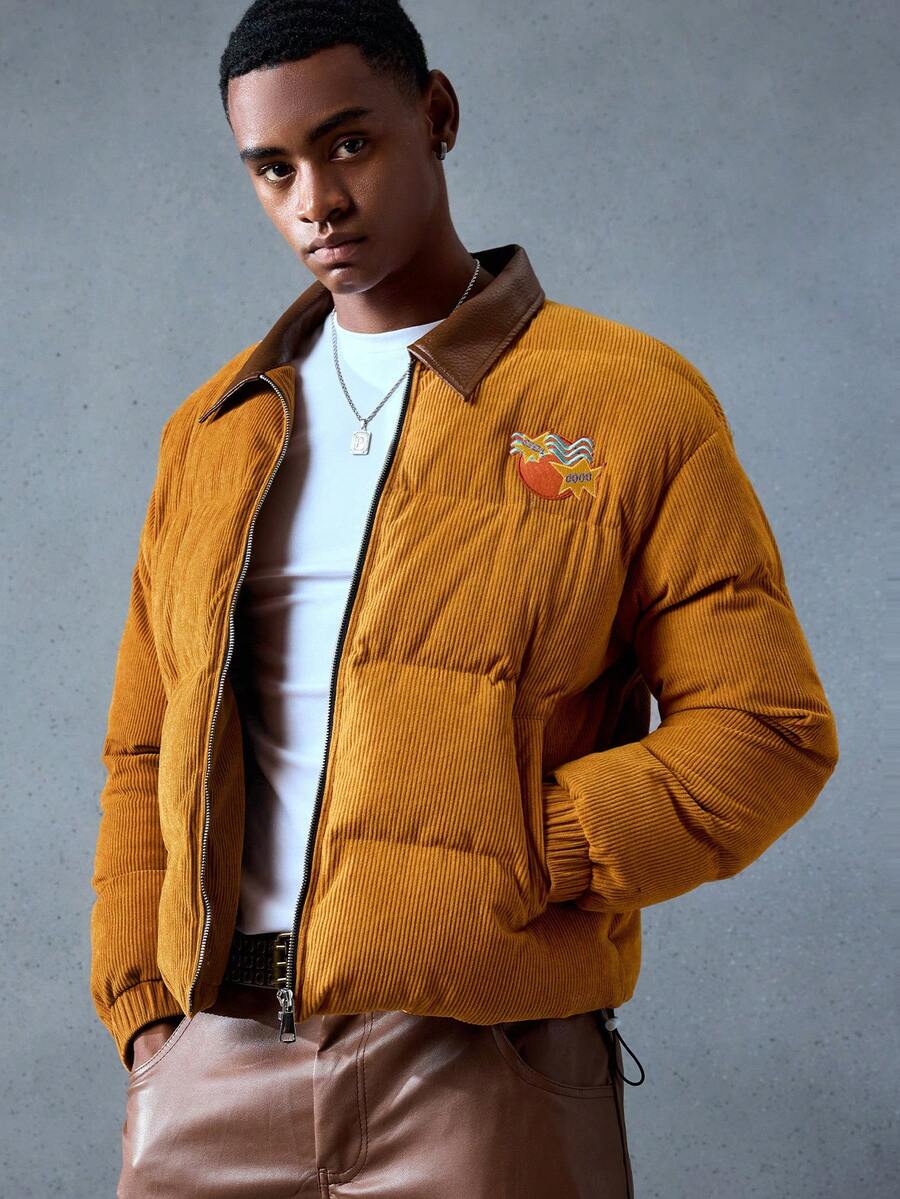 Street Life معطف طويل الأكمام مبطن مزود بسحاب وياقة لون أحادي للرجال