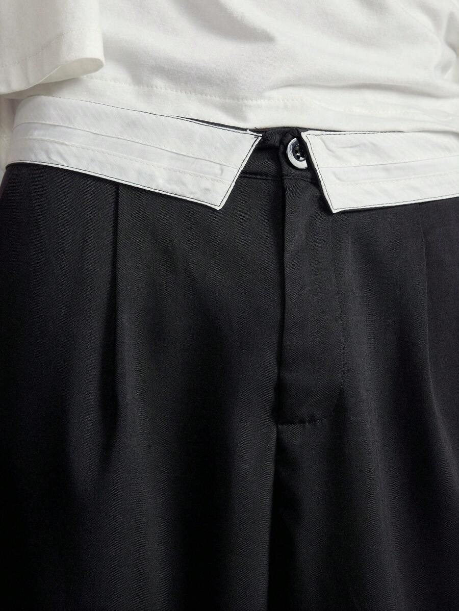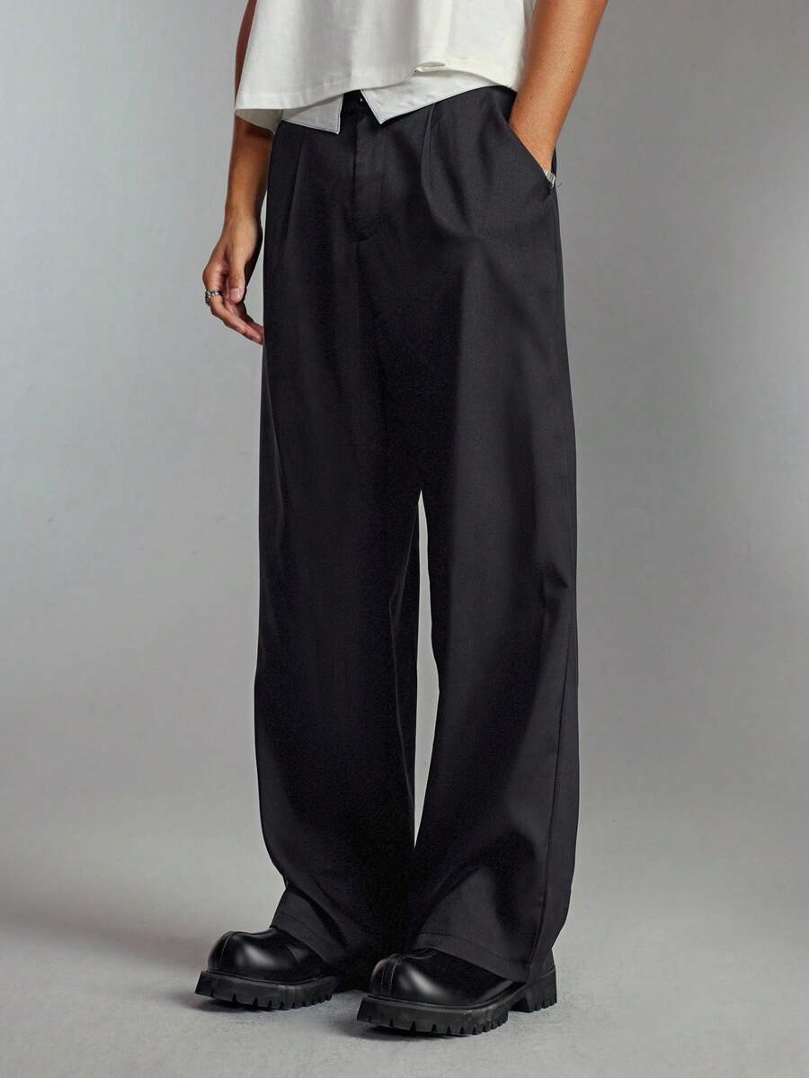 Prep بنطلون رجالي بتجاعيد لون أحادي الجيب ذو ساق واسعة للكلية والكاجوال، للخريف