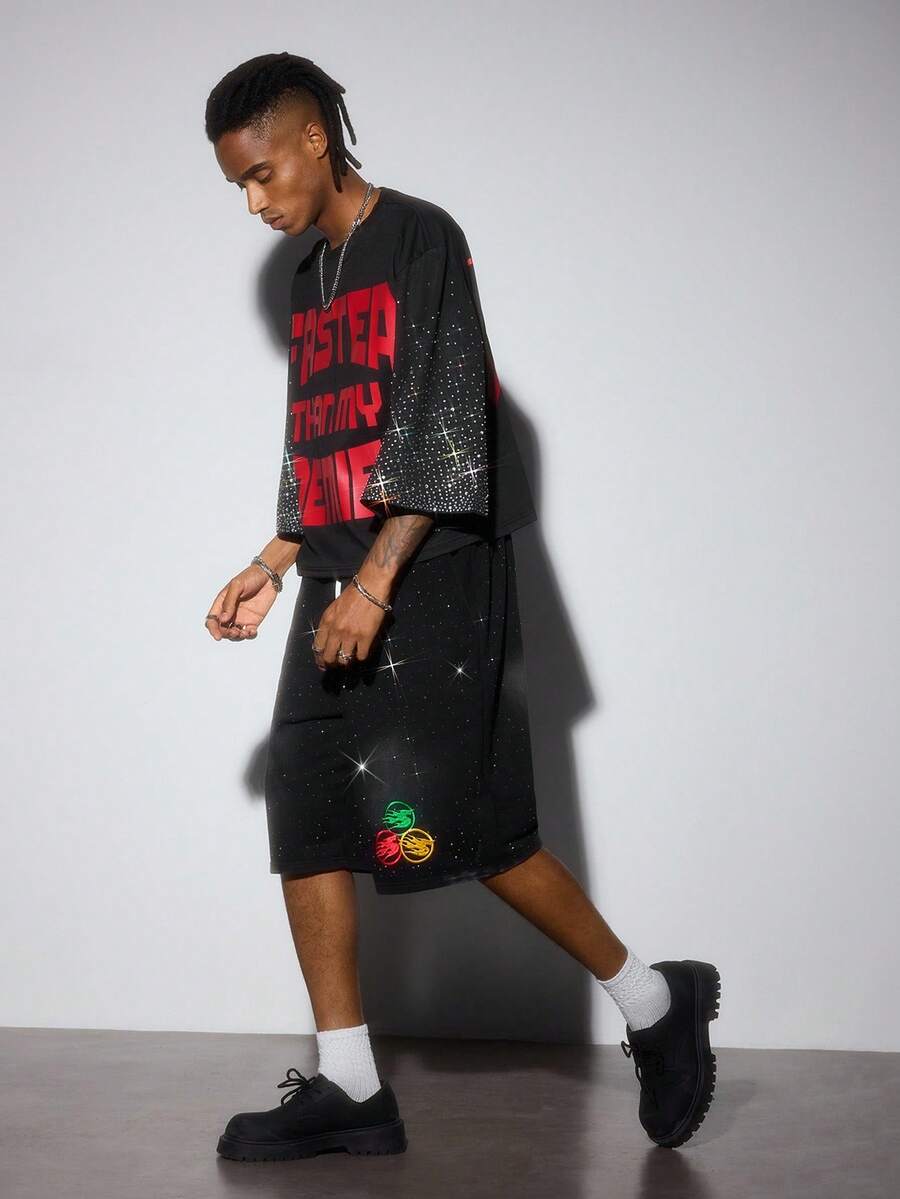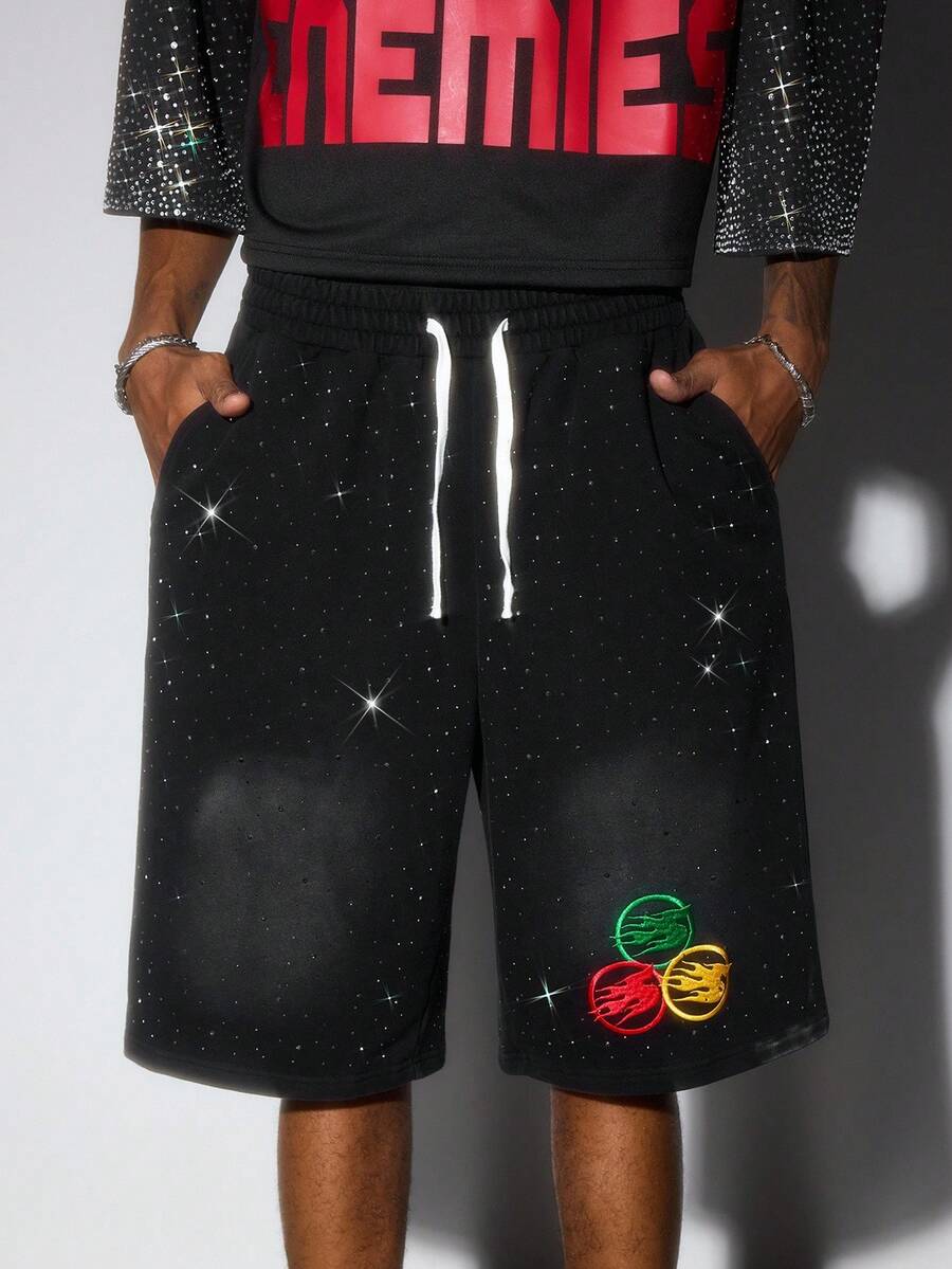 Street Life سراويل قصيرة كاجوال بخصر رباط مطبوعة بالألماس والحصان ال- 'لامع للرجال